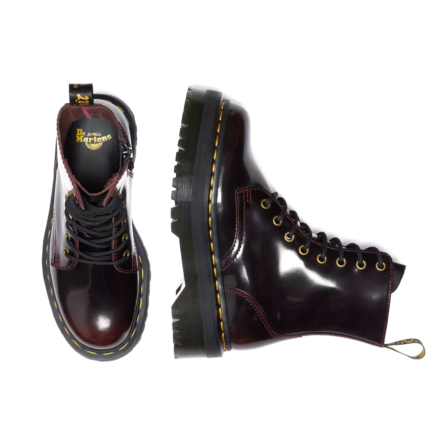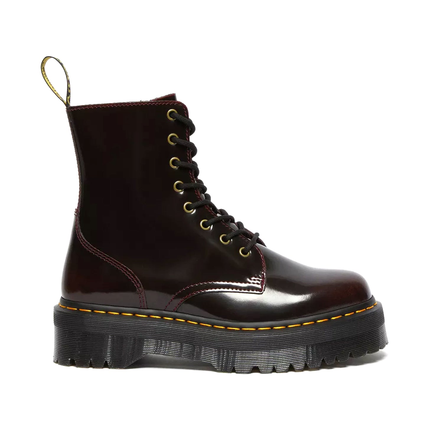 Nuova versione a pieno volume del nostro iconico stivale a 8 occhielli, Jadon mantiene tutti i dettagli originali del modello 1460: bordi scanalati, cuciture gialle e una fettuccia posteriore AirWair, ai quali aggiunge una zeppa elevata. Lo stivale dal carattere risoluto è ora disponibile in Arcadia, una pelle classica che scolorisce, pensata per opacizzarsi man mano la si indossa.