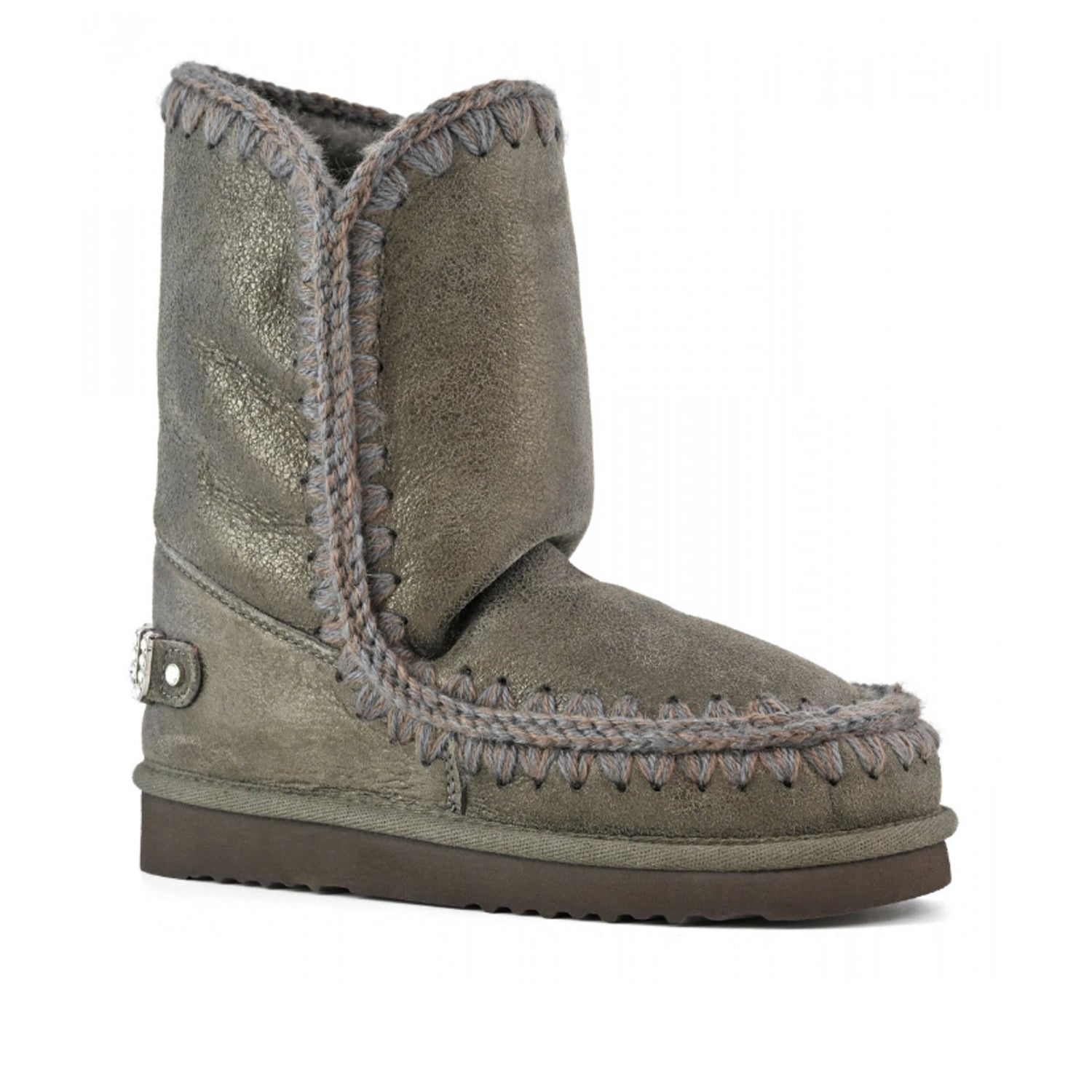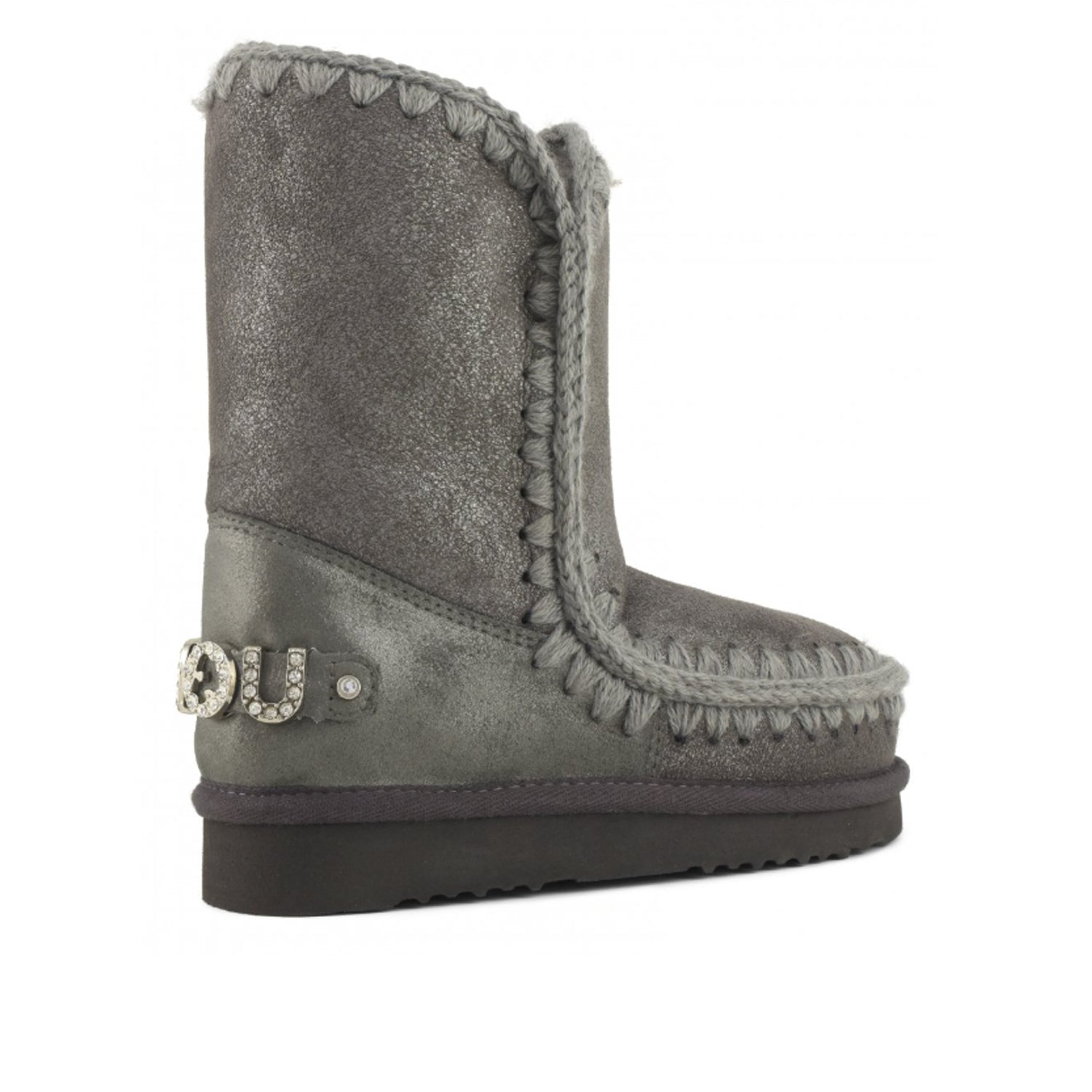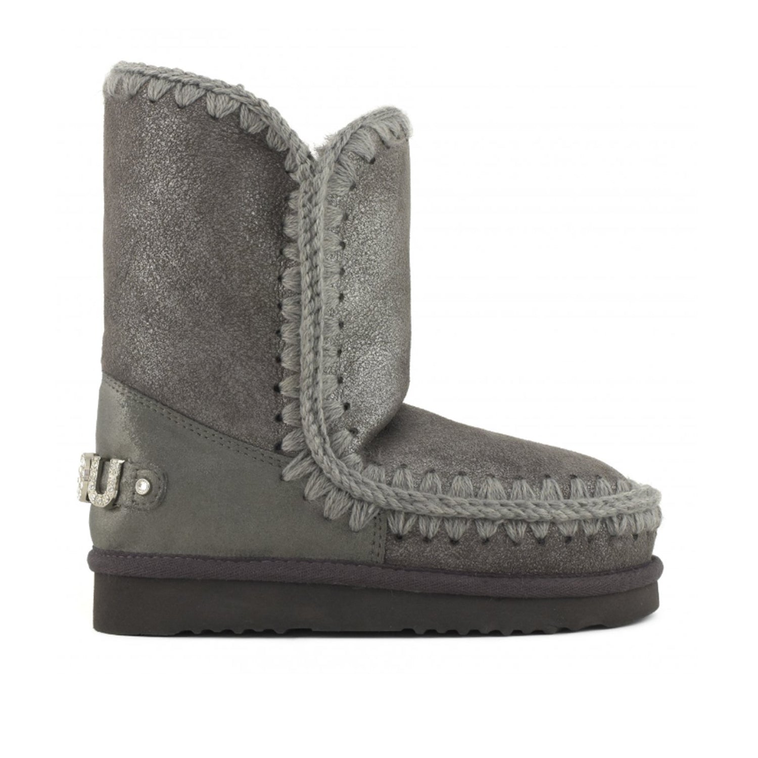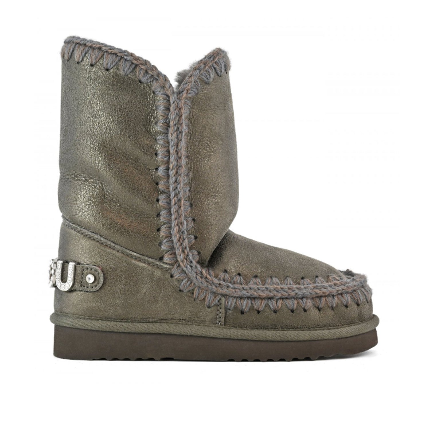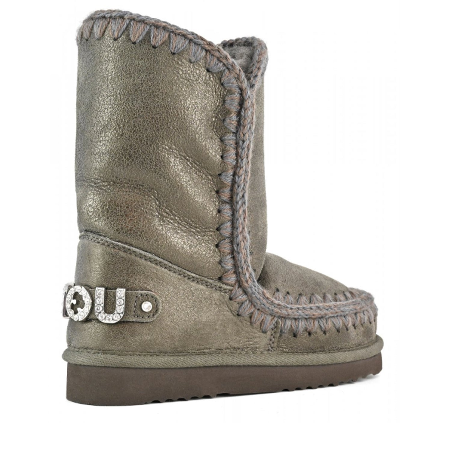 L'iconico eskimo 24 con logo in strass di mou è realizzato in caldissimo montone double-face, rifinito con l'inconfondibile cucitura in lana all'uncinetto firmata mou, tallone rinforzato e una suola esterna in EVA & gomma. Disponibile per ogni stagione in una gamma di finiture microglitterate e metallizzate, l'eskimo da 24 cm è accattivante, comoda e resistente. Altezza: 24cm. Vestibilità regolare.