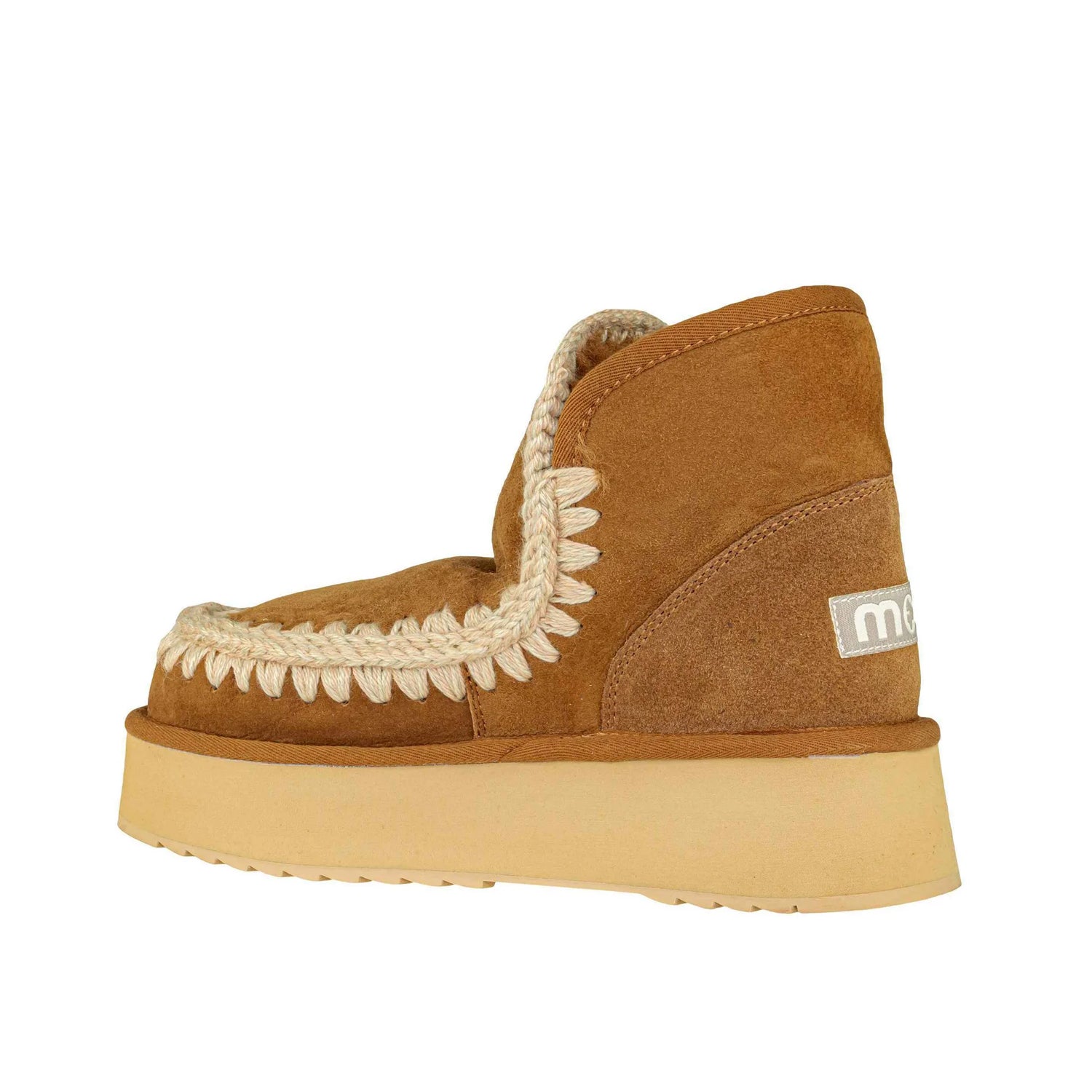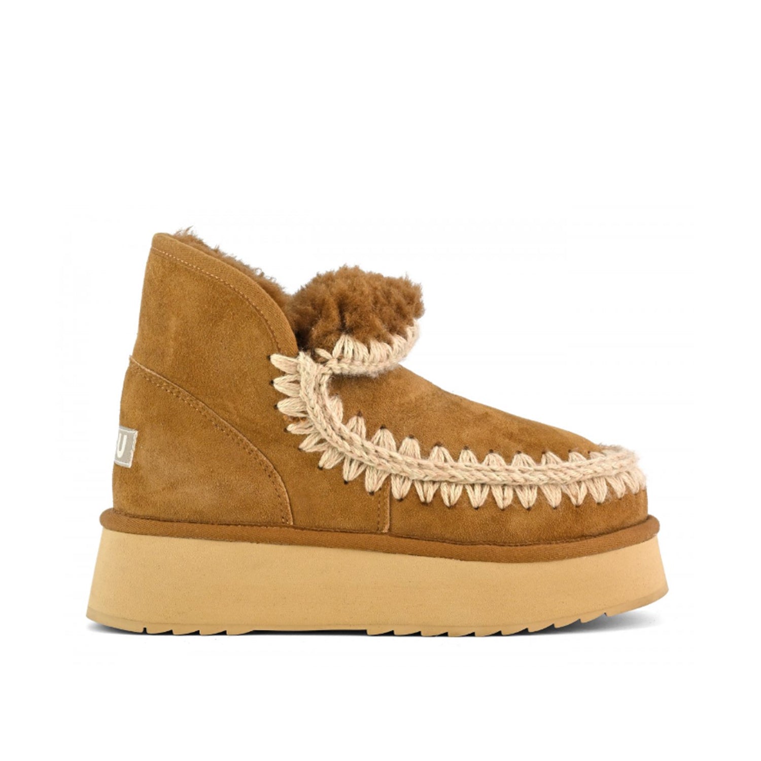 Il mini eskimo platform boot di mou è realizzato artigianalmente in pregiata pelle scamosciata e montone double-face, impreziosita dalle iconiche cuciture in lana all'uncinetto firmate mou. Incredibilmente confortevole e resistente con suola in gomma EVA. Altezza: 18cm.