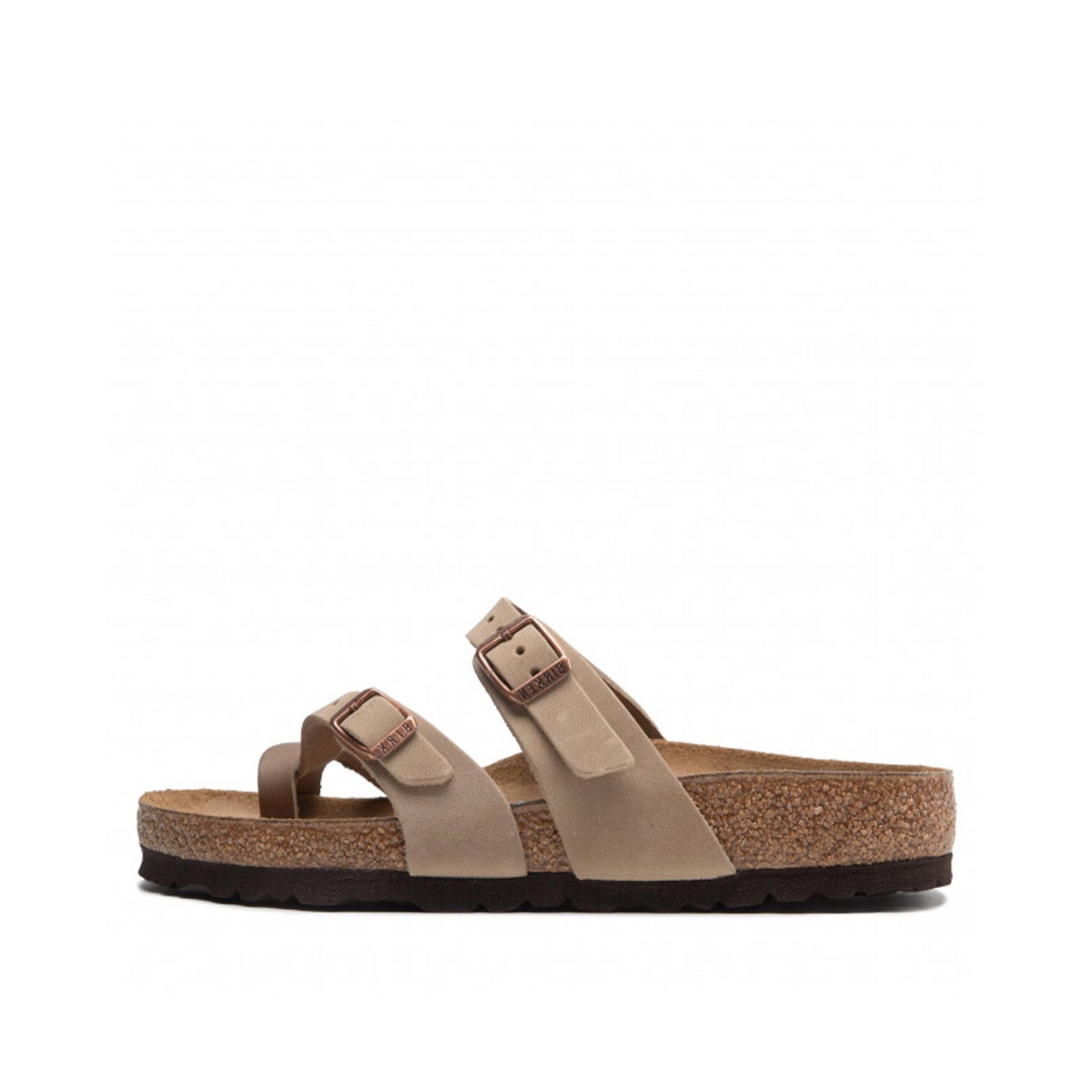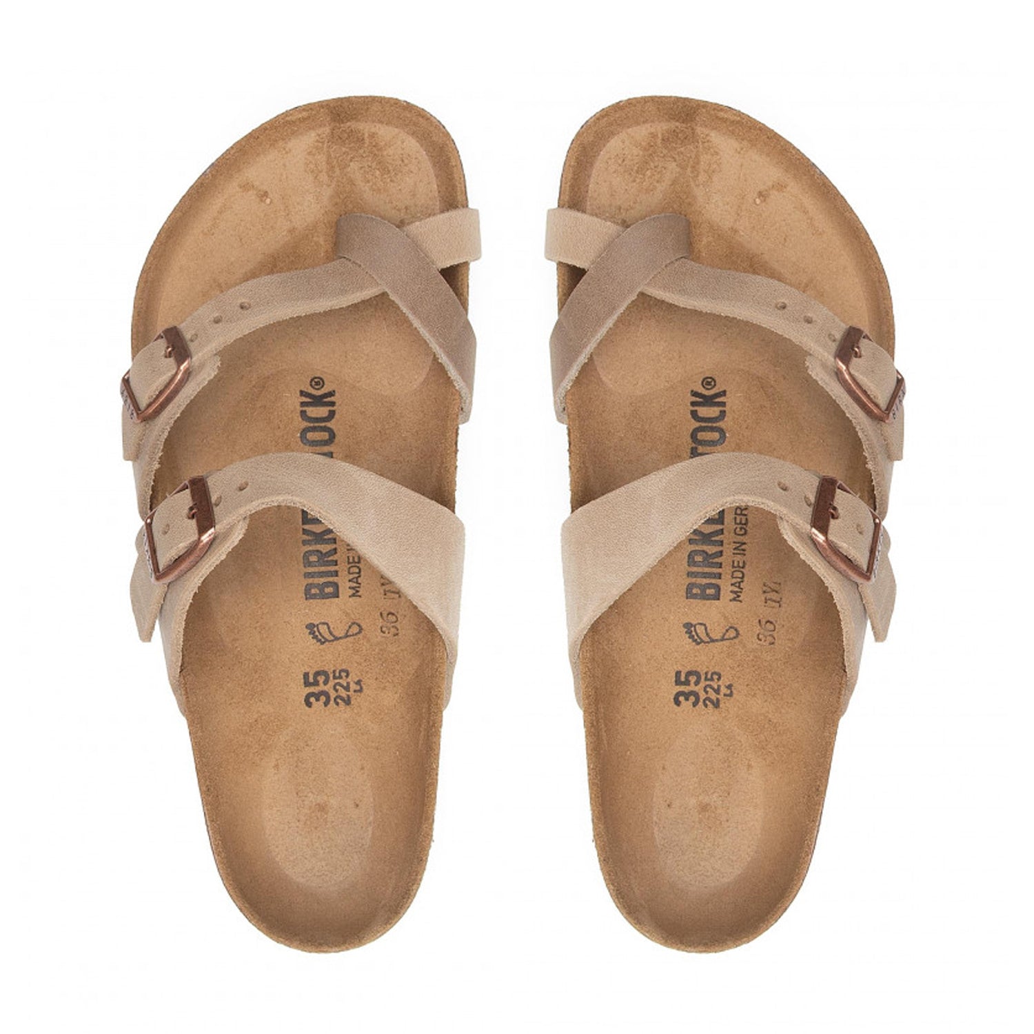 Il modello Mayari estremamente raffinato e dall'effetto trasparente con il plantare originale Birkenstock dalla forma anatomica in sughero e lattice e sottopiede avvolgente in pelle scamosciata effetto vellutato conquista per la riuscita sintesi di design e comfort. Due cinturini sottili sul collo del piede e sopra l'alluce con fibbie di metallo regolabili individualmente consentono di adattare il sandalo perfettamente a ogni forma di piede.